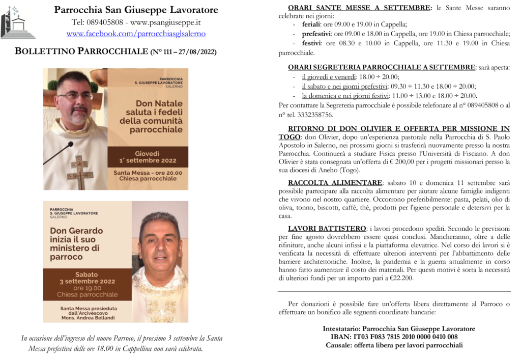 Bollettino parrocchiale n. 111 del 27/08/2022
